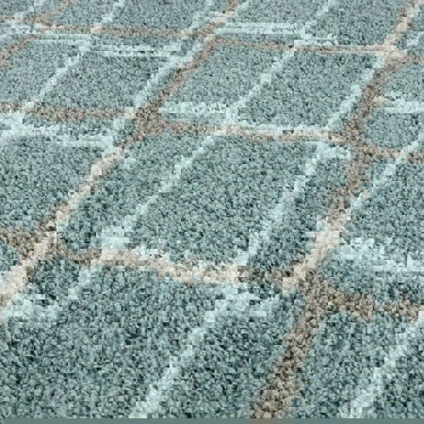 Elevate your interiors with the Moroccan Duck Egg Blue Shaggy Rug, where comfort meets style. Its dense, plush pile provides a soft and inviting surface underfoot, while the duck egg blue hue and subtle diamond-inspired pattern bring a calm, contemporary touch to your space. This versatile design works seamlessly in both modern and classic interiors.