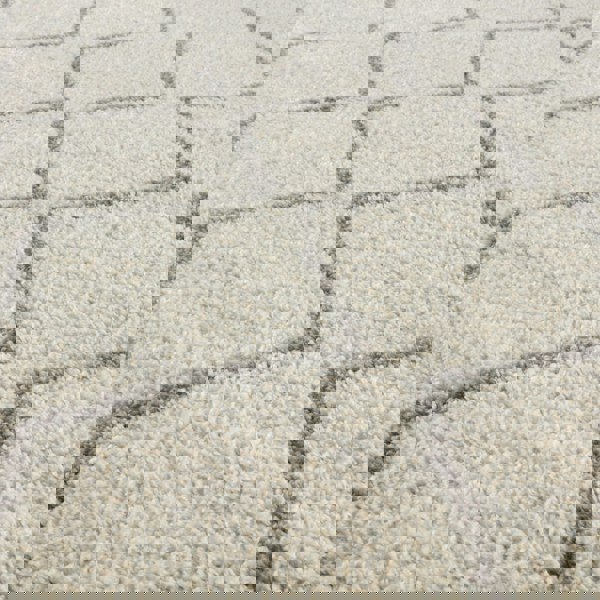 Add a touch of texture and comfort to your home with the Moroccan Ivory Grey Shaggy Rug. Its Moroccan-inspired pattern in soft ivory and grey tones adds subtle depth and style, making it a versatile choice for a range of interiors, from modern to classic.