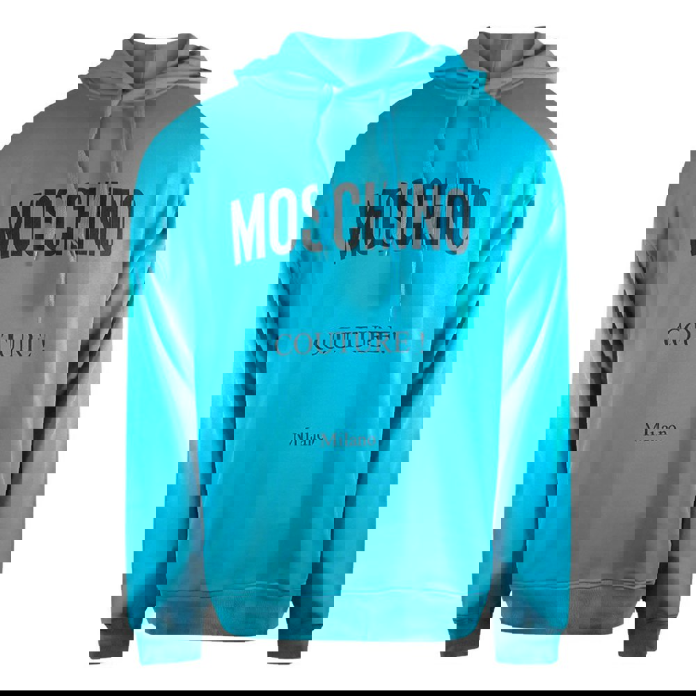 Experience the bold style and premium comfort of the Moschino Couture Logo Turquoise Blue Hoodie. Crafted from 100% cotton, this hoodie offers a soft, breathable feel perfect for everyday wear. Its vibrant turquoise blue color and iconic Moschino logo make a striking fashion statement, while the high-quality Portuguese craftsmanship ensures durability and a perfect fit. Ideal for those who want to combine luxury with casual ease, this hoodie elevates your wardrobe with a fresh, contemporary edge. Stay comfortable and stylish wherever you go with this standout piece from Moschino Couture.