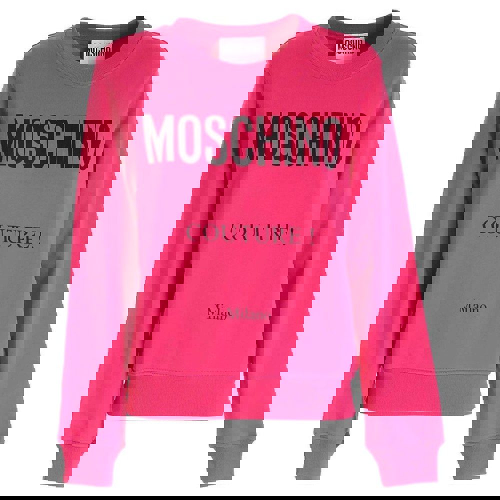 Elevate your wardrobe with the Moschino Couture Milano Fuxia Jumper, a vibrant statement piece that combines bold color with luxurious comfort.