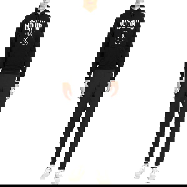 Elevate your casual wardrobe with the Moschino Double Smiley Black Hoodie, a perfect blend of comfort and bold style.
