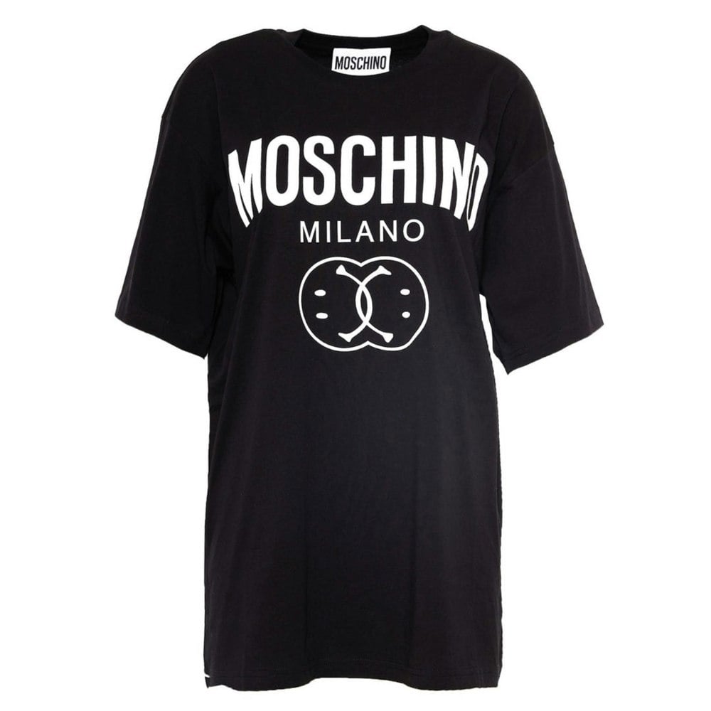Crafted for comfort and style, this oversized tee features Moschino’s iconic double smiley graphic, adding a playful yet bold statement to your look.
