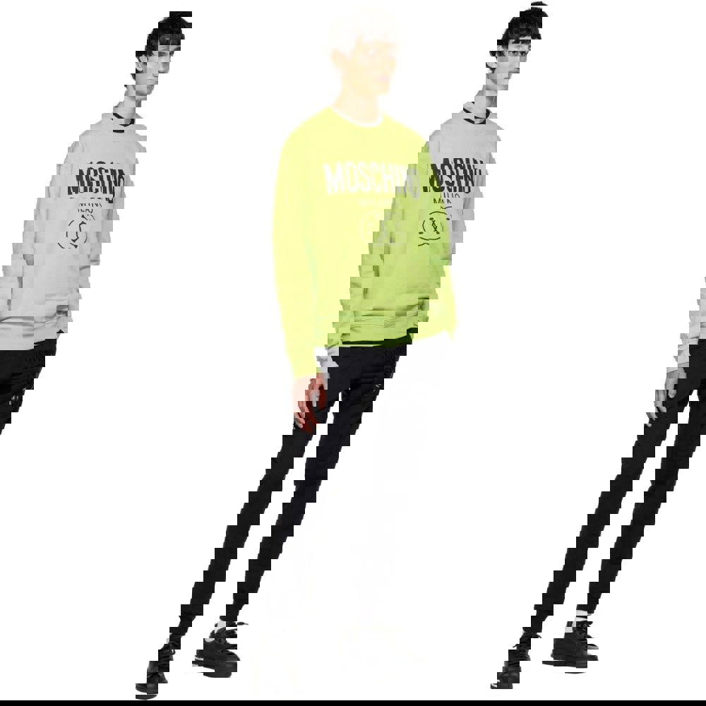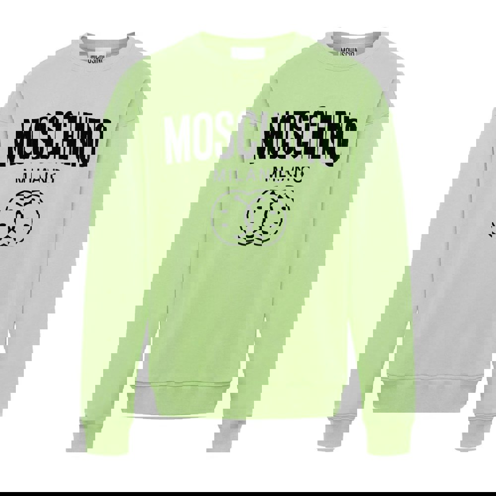 Elevate your wardrobe with the Moschino Double Smiley Green Jumper, a vibrant and playful piece that combines comfort with bold style.