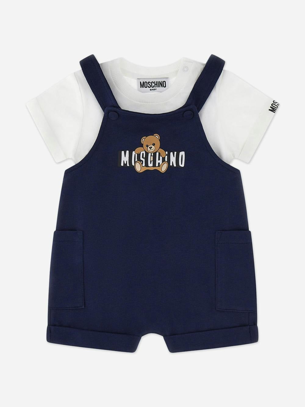 The navy colourway gives the ensemble a clean, classic finish, while the branded element adds a distinctive Moschino touch. A practical option for everyday dressing, with the T-shirt and dungarees paired to create a complete outfit.