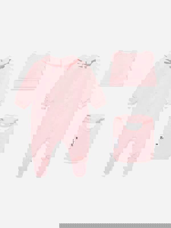 This Moschino Kids babygrow set comes in pink and includes the brand’s bear logo design. The set presents a coordinated look with Moschino’s signature bear motif as the main visual detail.