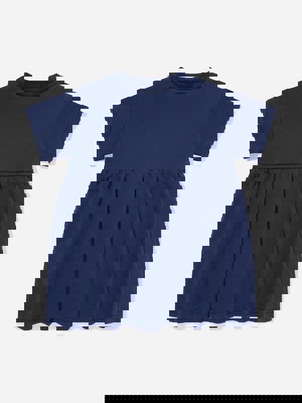 Moschino Kids baby girls dress in navy for SS2026. A bear-shaped pocket adds a playful detail to the front, bringing a signature character touch to the clean, simple silhouette. Made from soft materials for comfortable all-day wear, this piece offers an easy option for everyday outfits while keeping the look polished and distinctive.