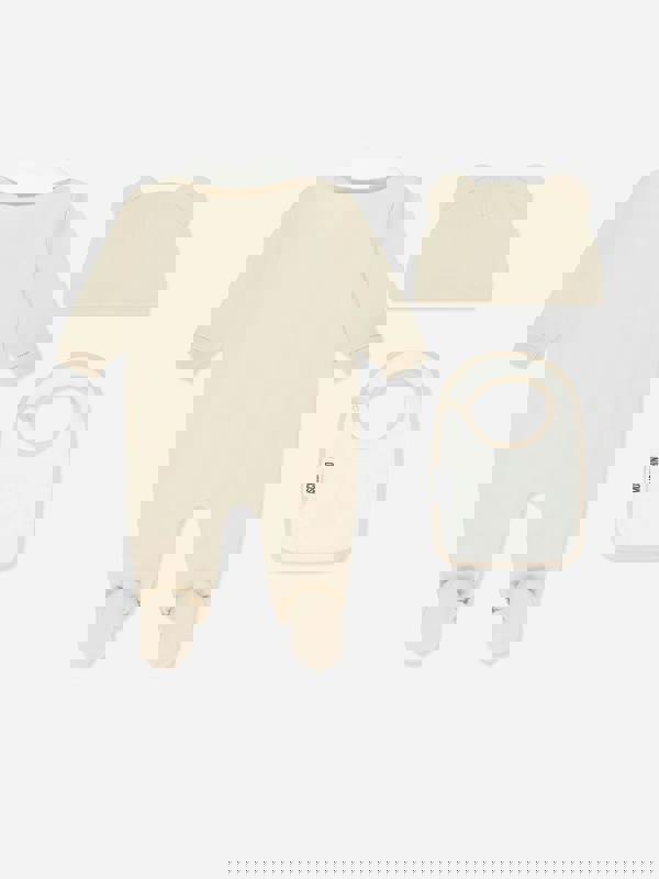 This Moschino Baby babygrow set comes in beige with a teddy bear logo print. The set forms part of the SS2026 collection and is presented as an outfit option for baby.