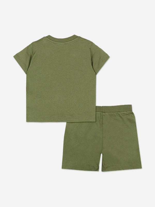 Moschino Baby Teddy Bear Logo Short Set in green for SS2026. The set includes Moschino’s signature teddy bear logo design.