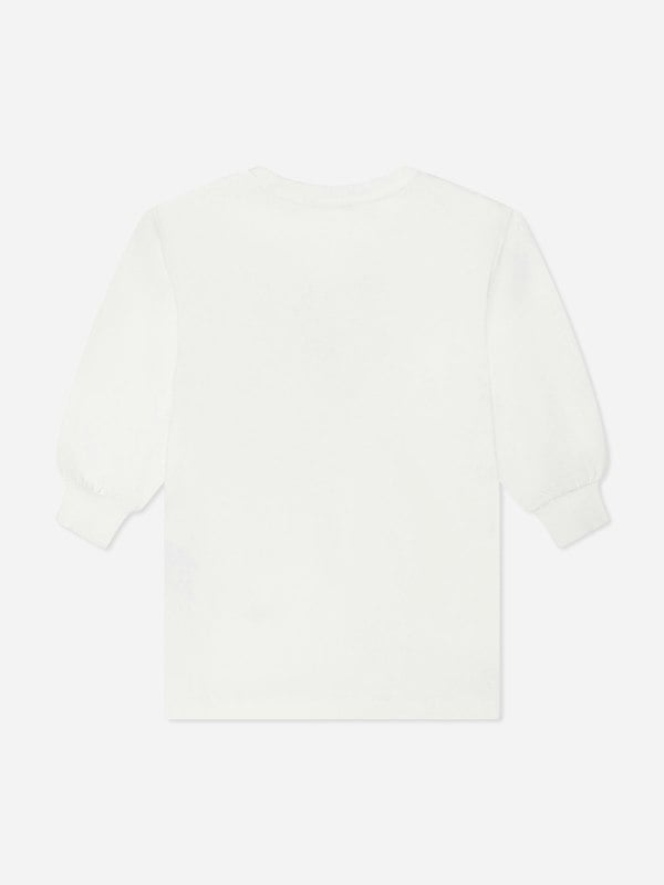 This Moschino Kids sweater dress comes in an ivory colourway with a bow detail and a heart motif. A seasonal piece for AW2025, it brings signature Moschino styling to a girls’ wardrobe.