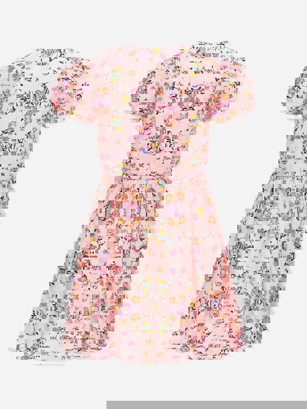 Moschino brings unique energy and wistful elegance to Italian design. This girls’ dress has an all-over floral print with teddy bear imagery, finished in pink for a playful look.