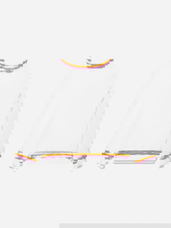 Moschino Kids girls embroidered logo sweatshirt in white from the SS2023 collection. The front logo embroidery adds a distinctive branded finish, with delicate stitching for a clean, graphic look.