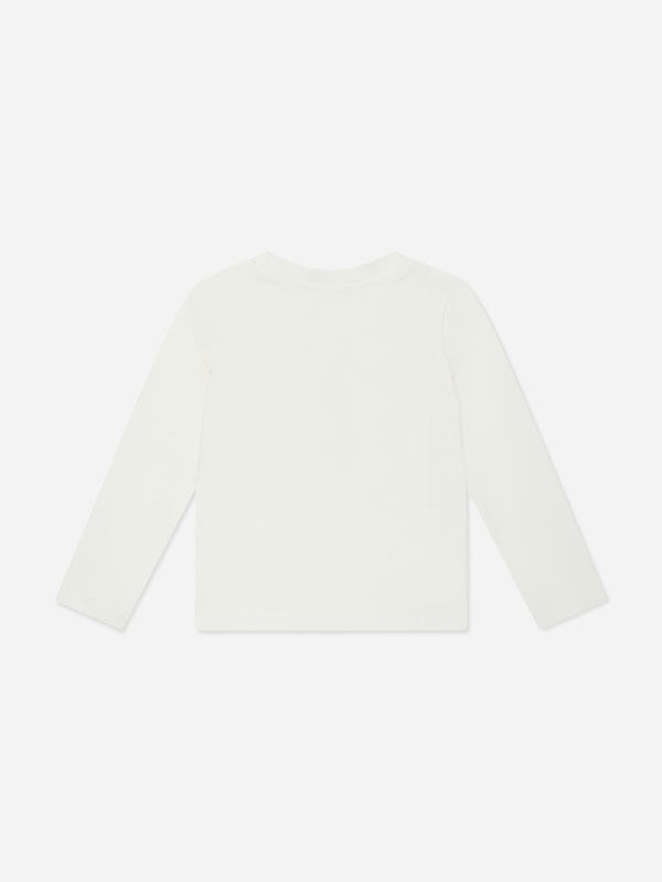 Moschino Kids brings a playful finish to everyday dressing with this girls long sleeve T-shirt in ivory. The front shows a Moschino print with a teddy bear holding a heart, creating a bold graphic look. Cut with a round neck and a straight hem, it offers a clean, simple shape that works well for regular wear.