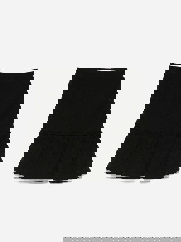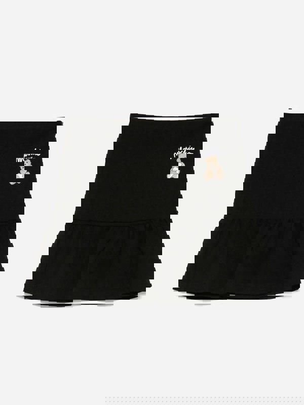 Moschino Kids brings a playful finish to everyday dressing with this black skirt. The front is detailed with a Teddy Bear print, heart motif and logo, creating a bold focal point. A ruffle hem adds extra movement, while the adjustable waist includes an internal elastic band for a secure fit. Fastenings include a button and a side zip for easy dressing.
