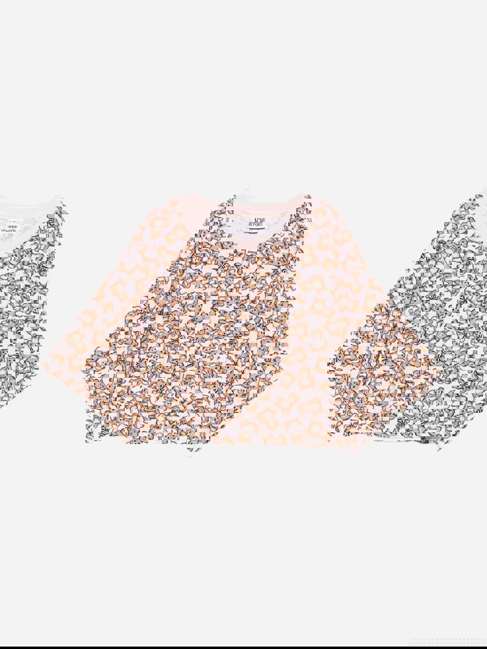 Italian fashion House Moschino depict energy and precision into their fun-filled abstracts. This girls sugar bears bows t-shirt features striking all-over teddy bear print for a dynamic visual aesthetic.