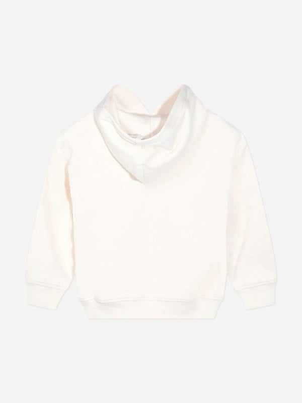 This unisex Moschino Kids hoodie comes in ivory cotton with a soft cream finish. The front shows the brand’s teddy bear graphic with Moschino printing, paired with large black Moschino lettering for a bold contrast. A cosy hood completes the everyday shape, while ribbed cuffs and hem keep the silhouette neat and structured.