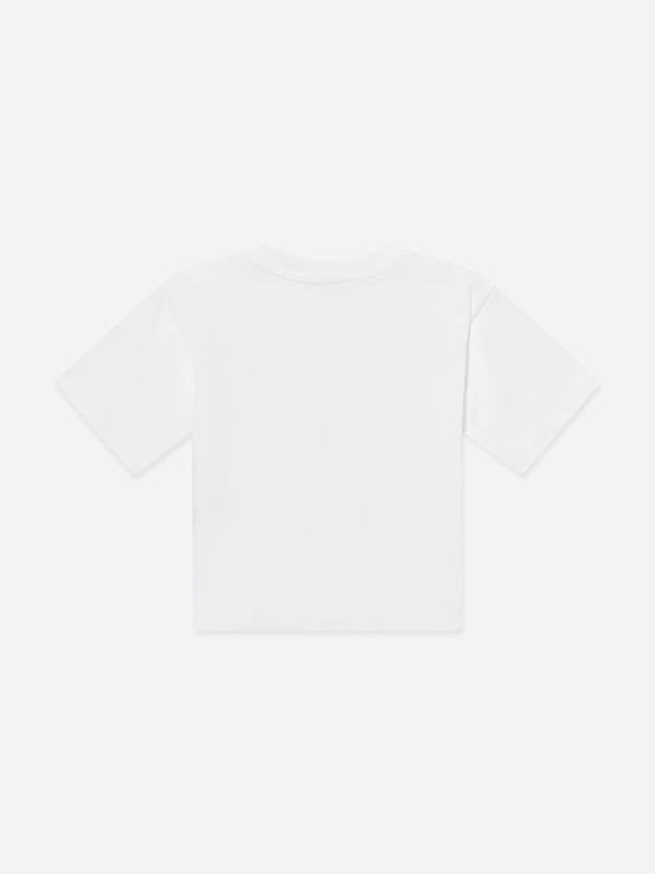 This Moschino Kids unisex T-shirt in white reworks the Italian House’s teddy motif from multiple perspectives. It presents a bold graphic look that reflects the label’s dynamic personality, with a Triple Bear Moschino print as the main detail. A ribbed round neck and short sleeves keep the silhouette clean, finished with a straight hem for a neat outline.