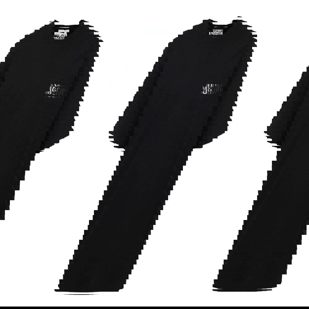 Elevate your casual wardrobe with the Moschino Black T-Shirt, featuring the iconic Moschino logo patch for a bold, stylish statement.