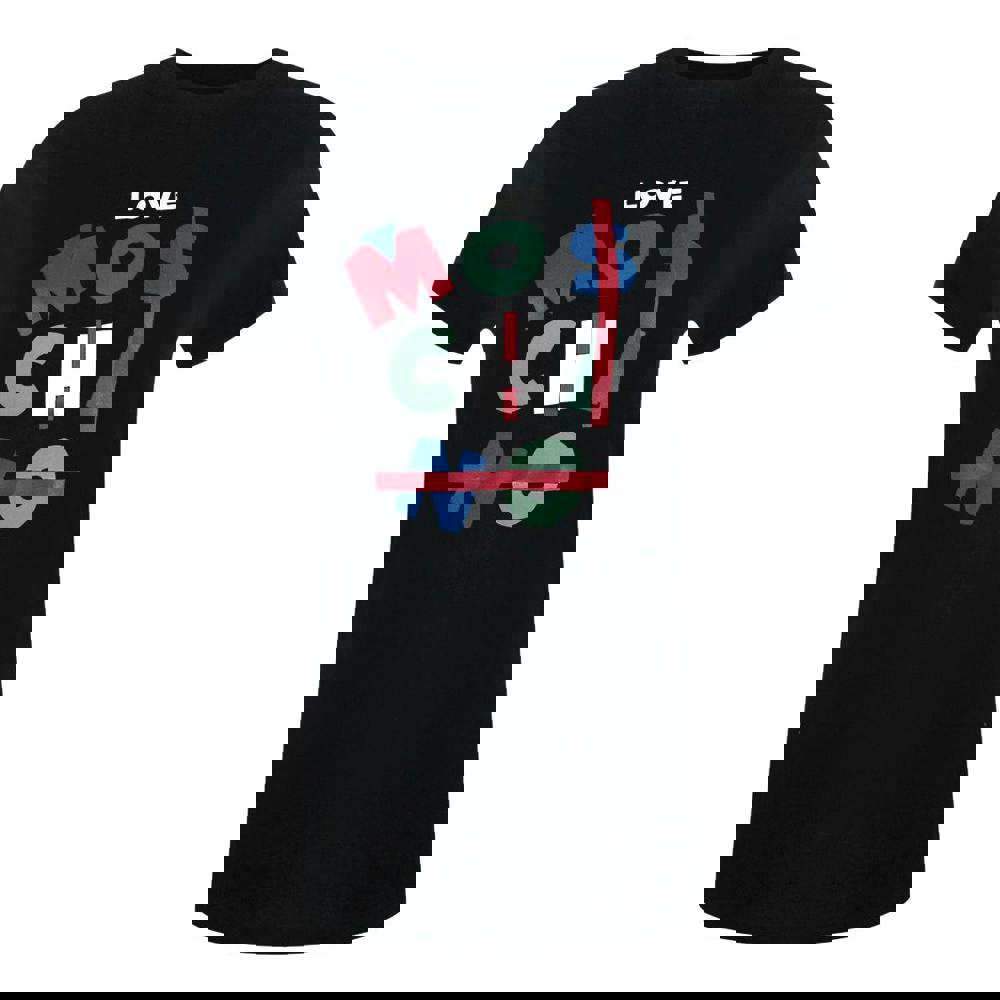 Love Moschino's iconic Jumble Logo Black T-Shirt brings playful sophistication to your everyday wardrobe.