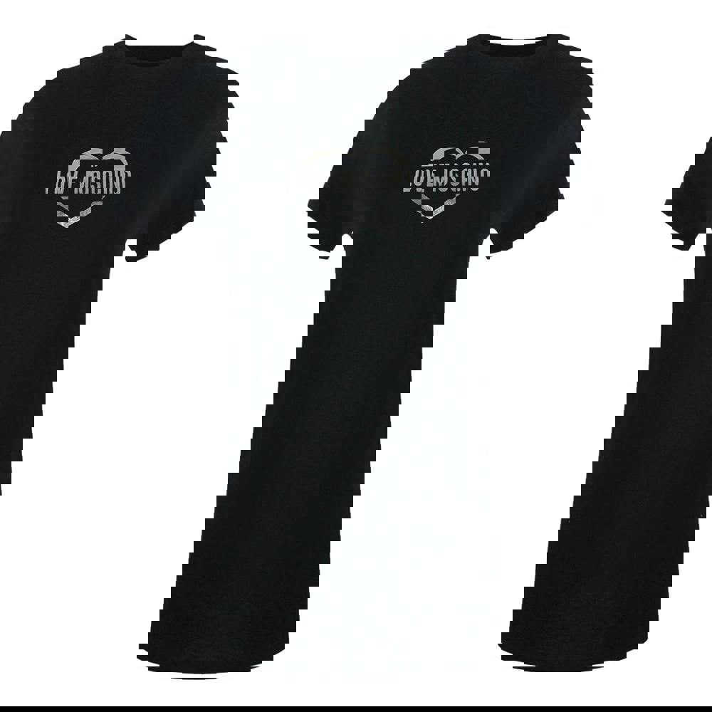 Love Moschino's iconic shiny heart logo takes centre stage on this striking black t-shirt, delivering effortless style with unmistakable designer appeal.