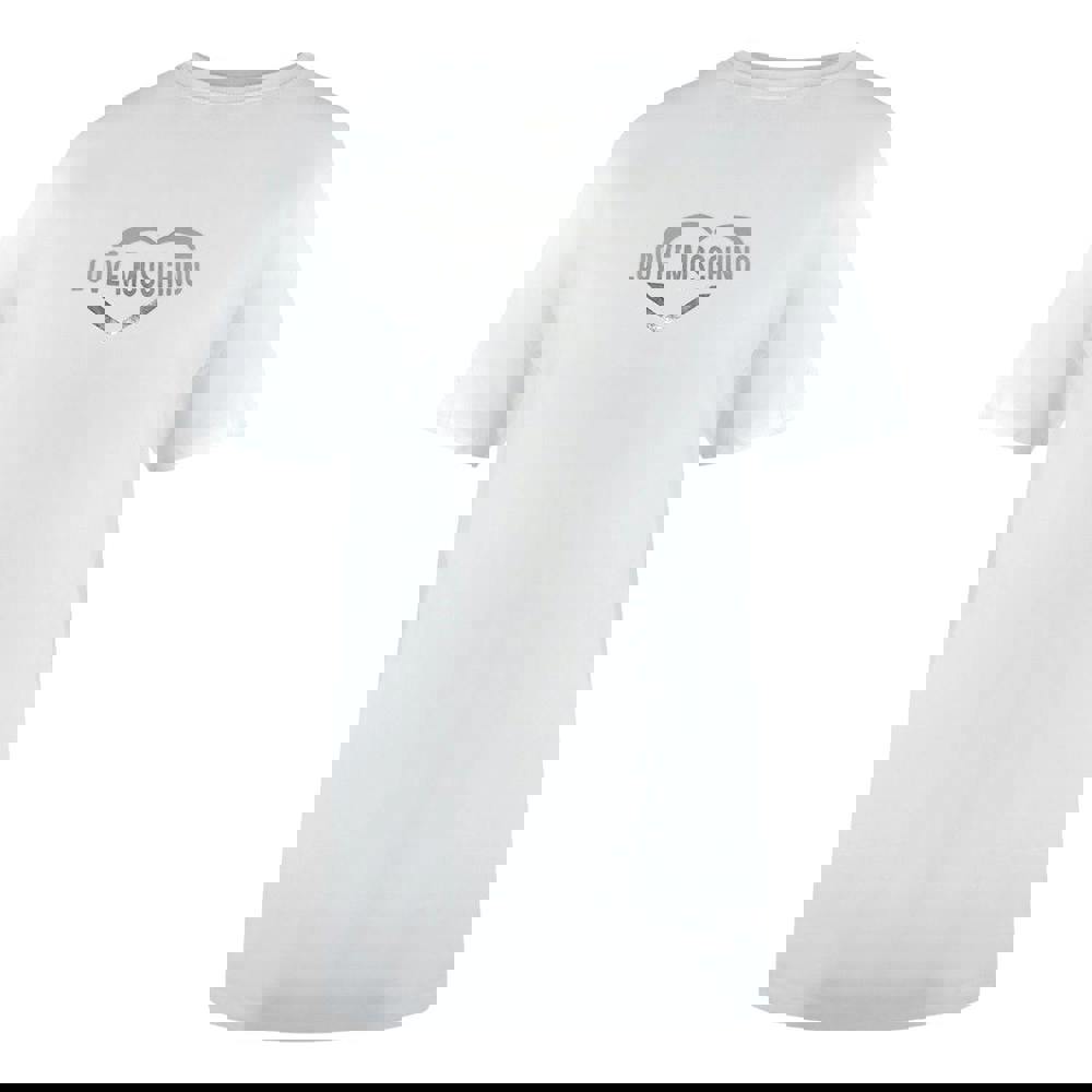 Elevate your everyday style with this Love Moschino white t-shirt, featuring the brand's signature shiny heart logo that captures attention with subtle glamour.