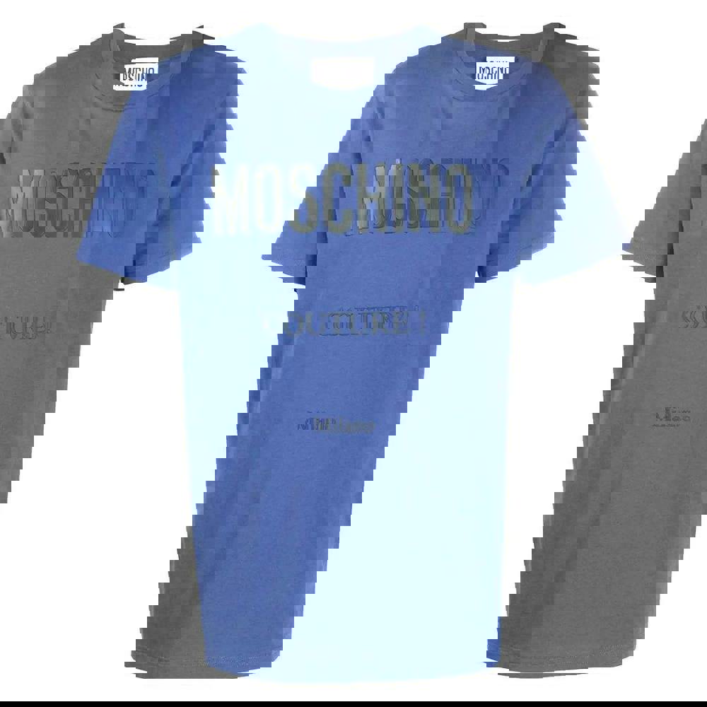 This Moschino Mens Couture Milano T-shirt comes in blue and is made from 100% cotton. It has a crew neckline and short sleeves for a clean, casual shape. The front design combines logo and text detailing for a distinctive branded finish.