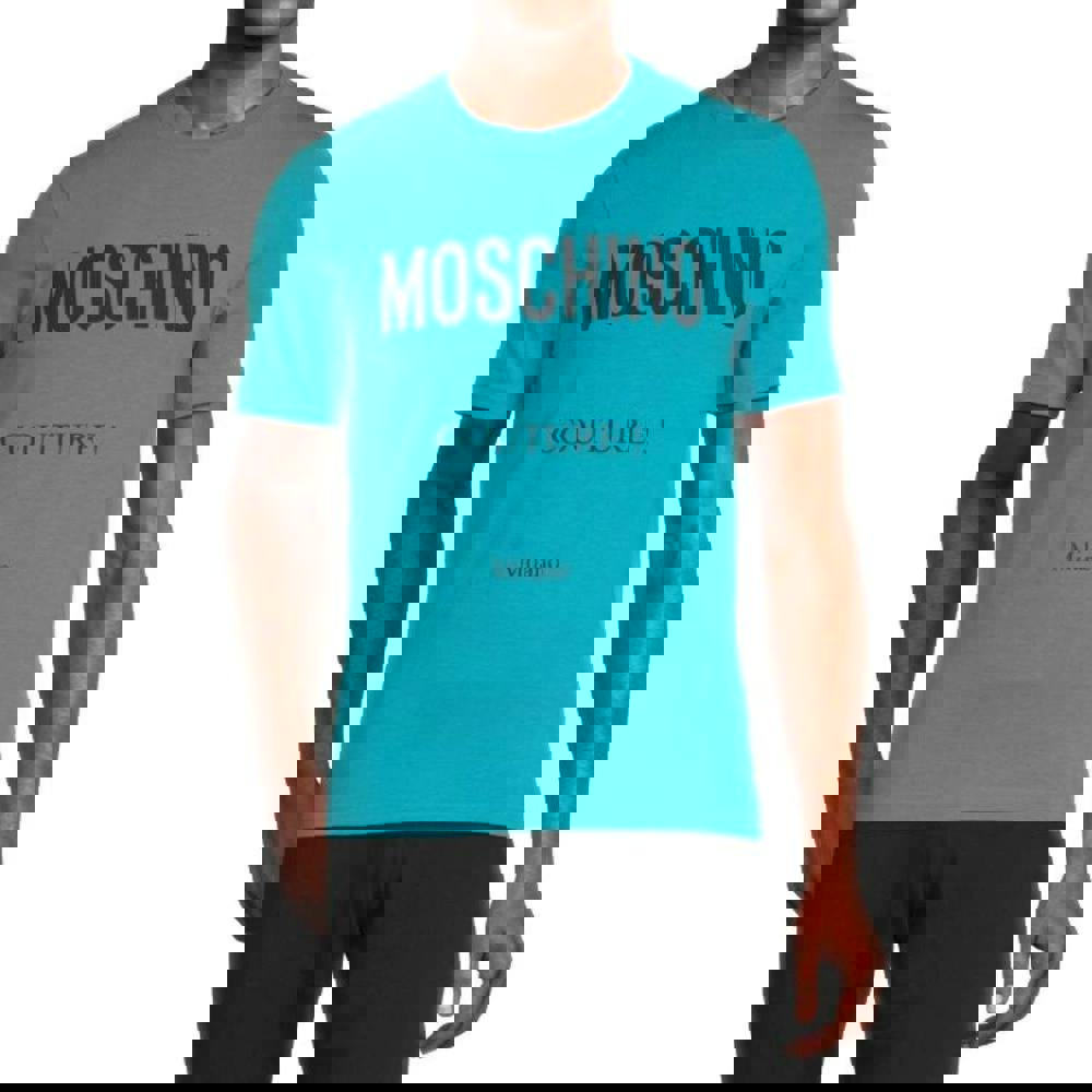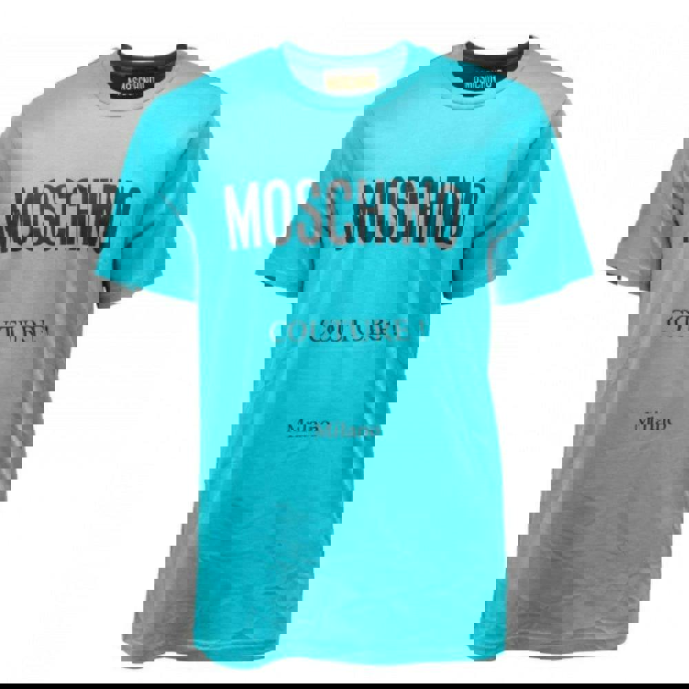 This Moschino Mens Couture Milano T-shirt comes in light blue and is made from 100% cotton. The design combines logo and text detailing for a bold, graphic finish. A crew neckline and short sleeves keep the silhouette clean and classic, making it an easy option for everyday wear.