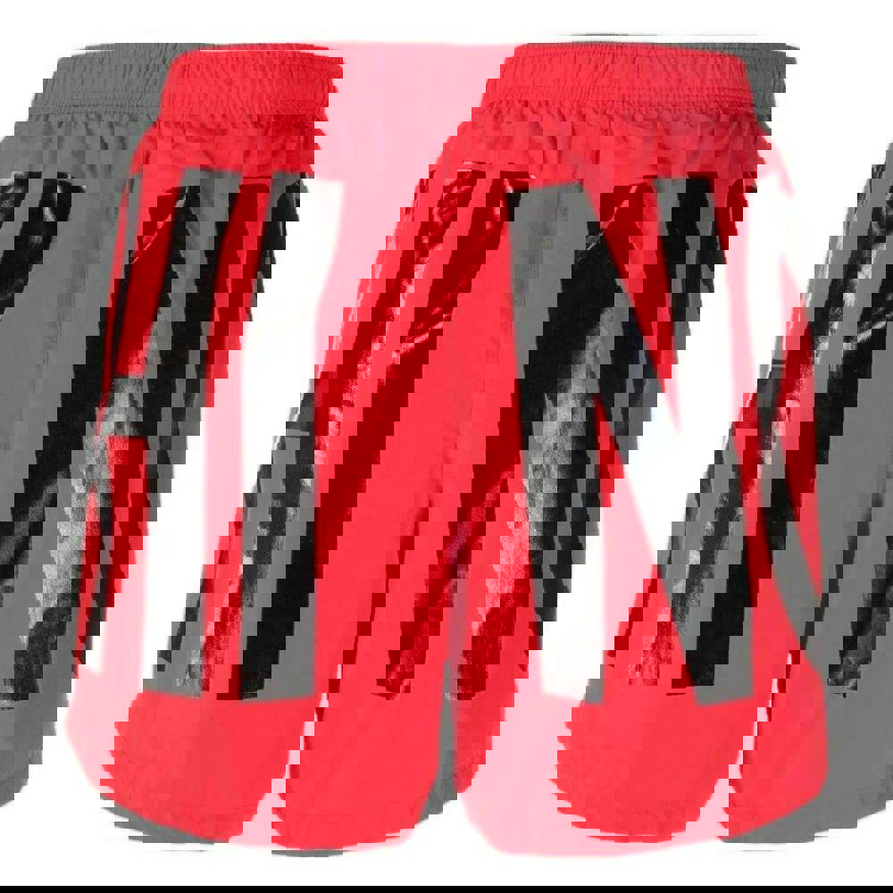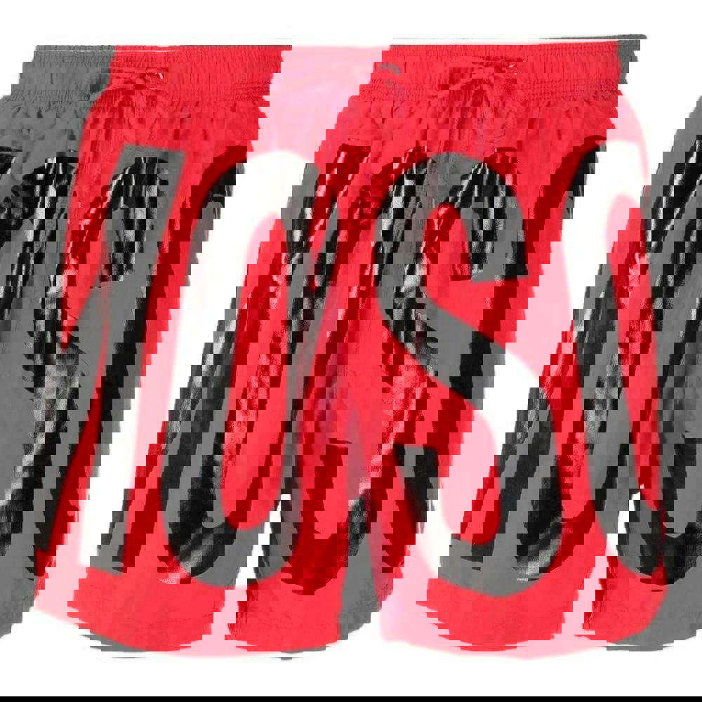 Moschino swim shorts in red with a printed design and pull-on construction. The waistband combines an elasticated finish with a drawstring for adjustable wear, making them a practical choice for pool and beach use. Made from 100% polyester.
