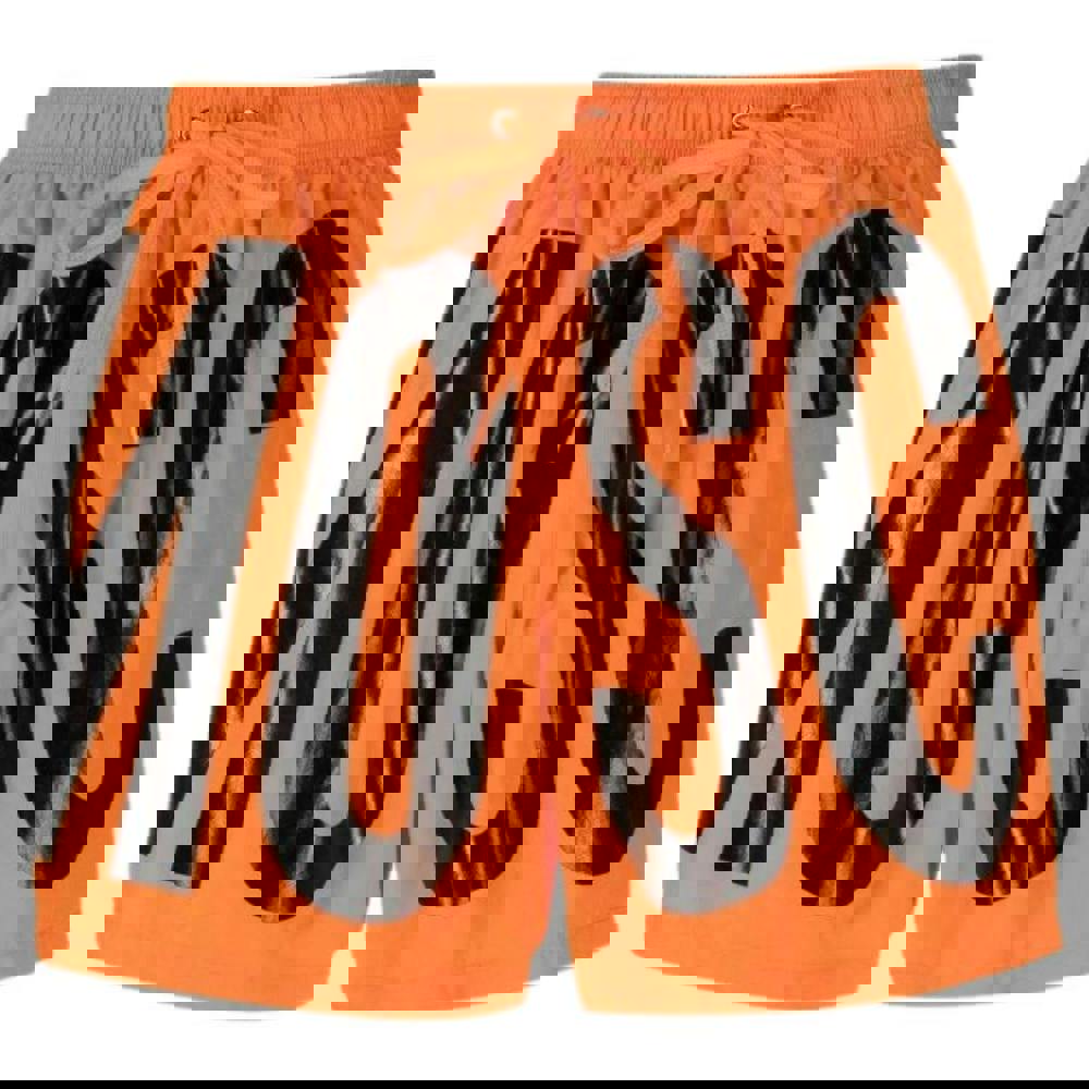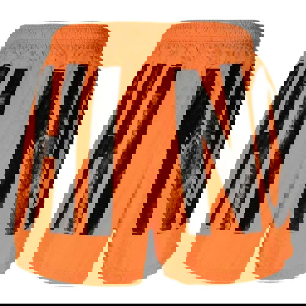 Moschino Mens Logo Swim Shorts in orange offer a pull-on style with an elasticated waistband and drawstring for adjustable wear. The printed design adds a bold finish, keeping the look clean and graphic for poolside and beach use. Made from 100% polyester, they provide a lightweight option for warm-weather days and packing into a holiday bag.