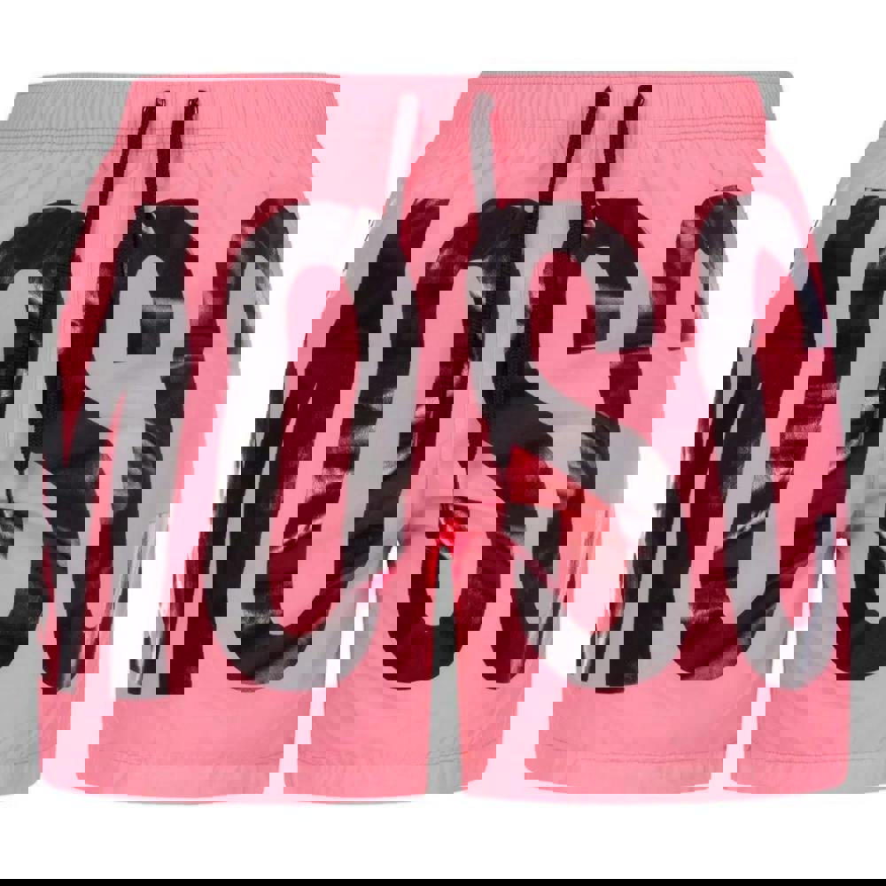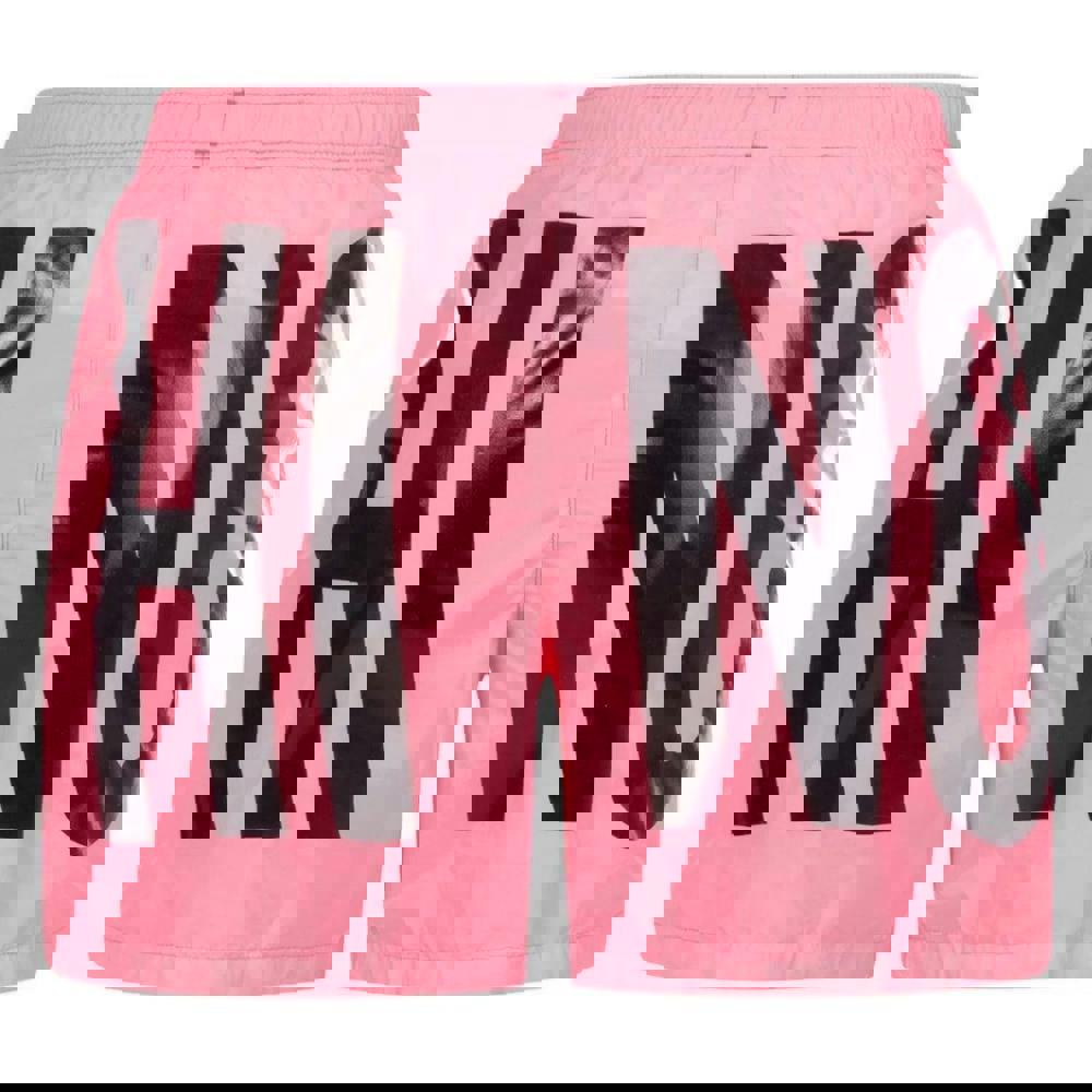Moschino mens logo swim shorts in pink with a printed design. The pull-on style is finished with an elasticated waistband and an adjustable drawstring for a secure fit.