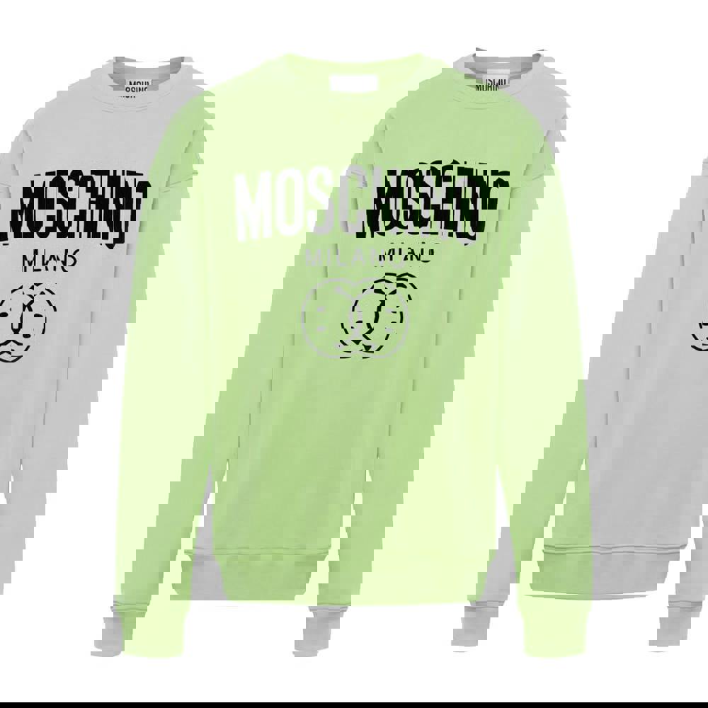This Moschino Mens Milano jumper comes in green with a knitted construction and a printed design. The lightweight fabric is finished with a crew neckline and long sleeves for a classic jumper shape.