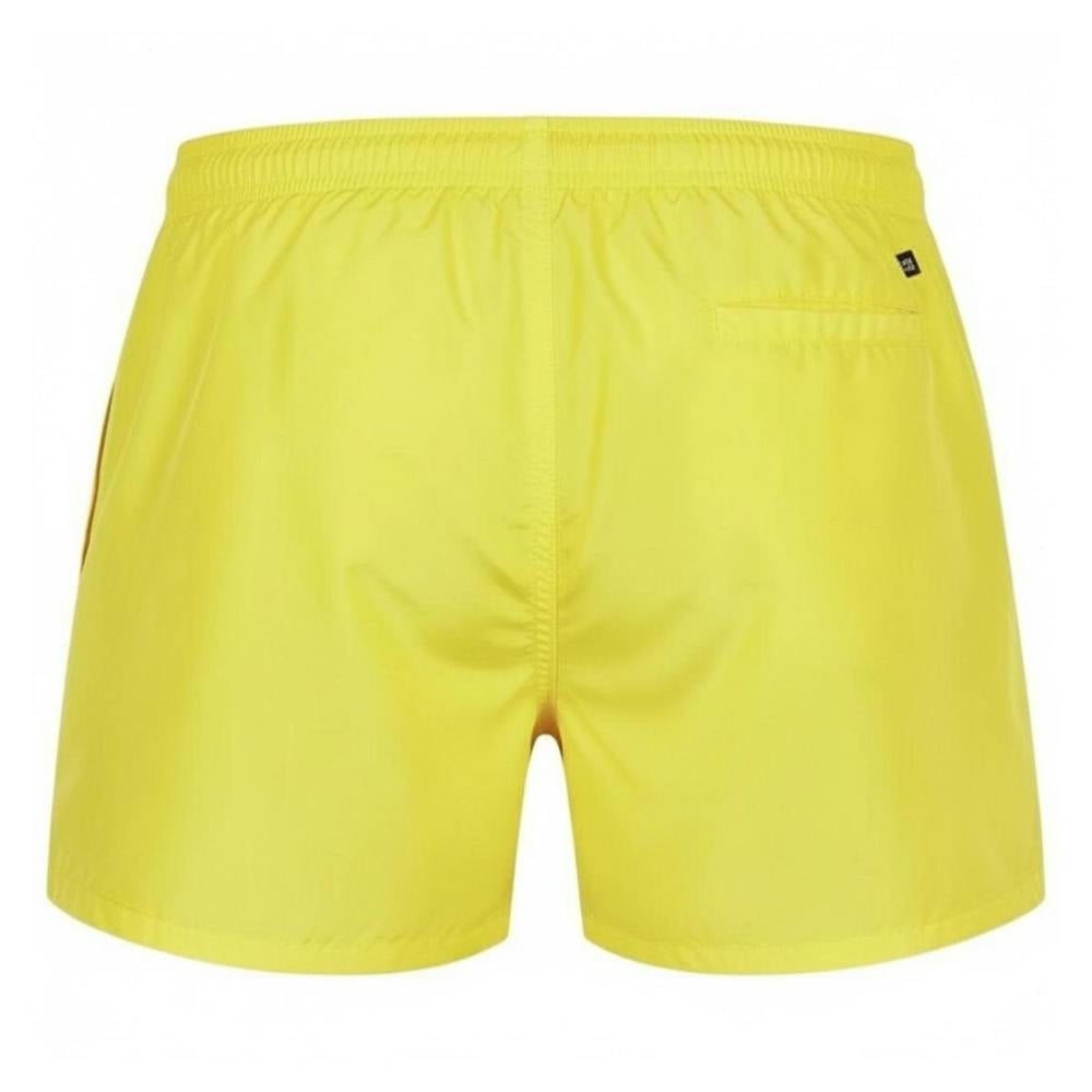 Moschino Mens Milano Large Logo Swim Shorts in yellow offer a pull-on style with an elasticated waistband and drawcord for adjustment. The design includes contrast detailing with a printed logo, keeping the look bold and graphic for poolside and beach wear. Practical storage is provided through two side pockets and a single back pocket.