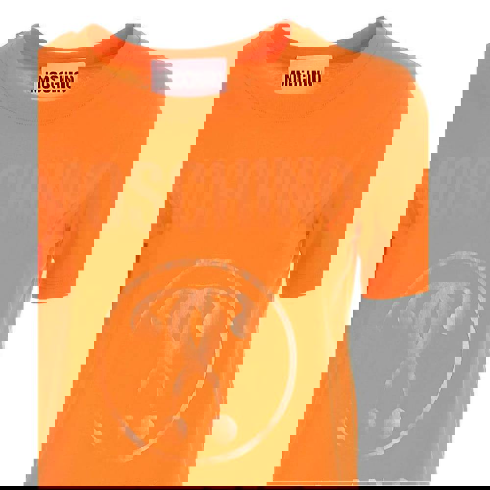 This Moschino men’s T-shirt comes in orange and is made from 100% cotton. It has a crew neck and short sleeves for a clean, casual shape.