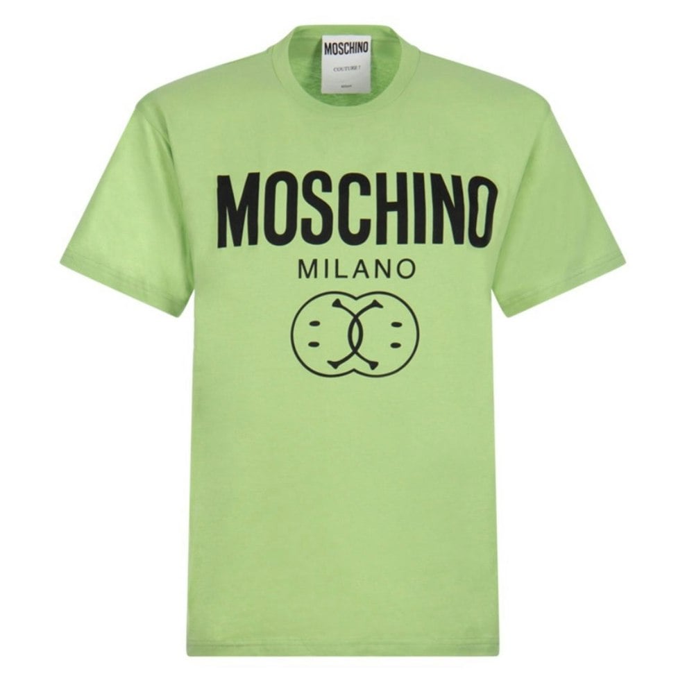 Elevate your casual wardrobe with the Moschino Milano Double Smiley Logo Green T-Shirt.