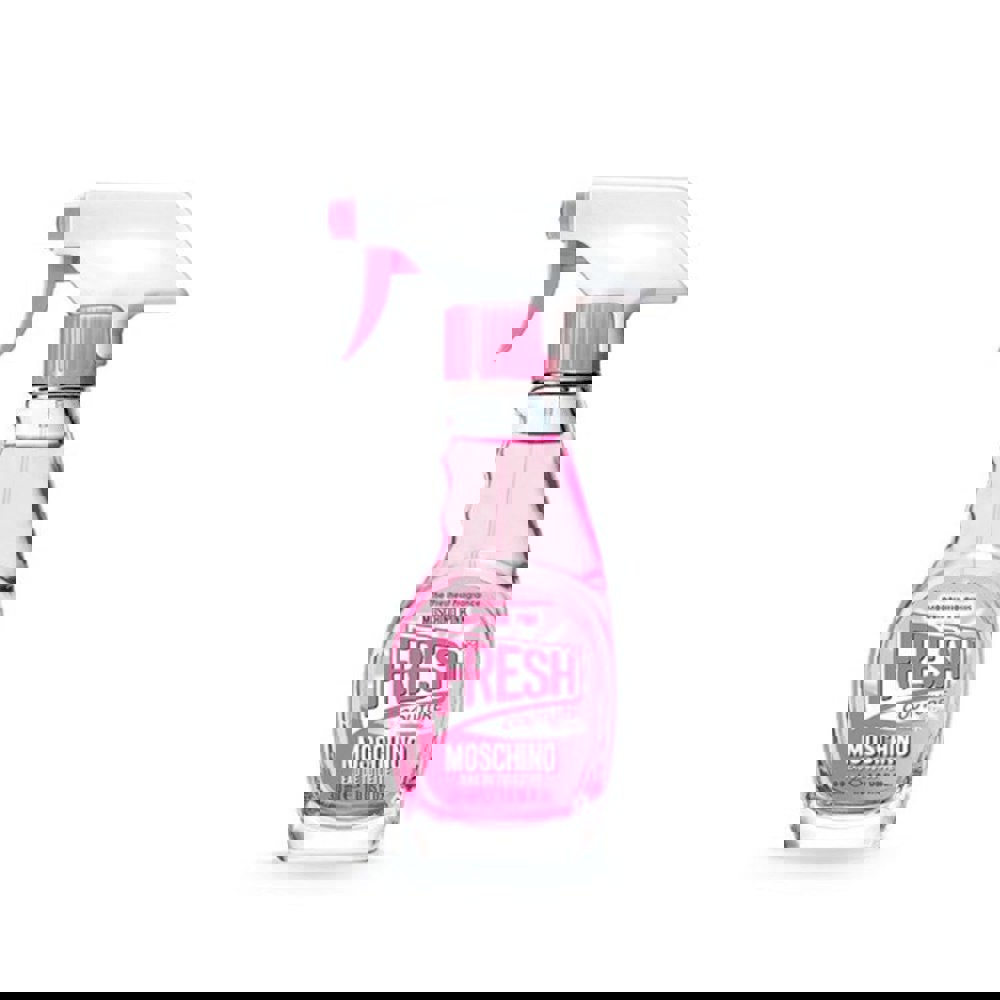 Moschino brings a touch of the unexpected with the fruity floral fragrance Pink Fresh Couture. Inspired by Moschino’s runway looks under the direction of Creative Director Jeremy Scott the story of the now world-famous 'cleaning spray' bottle moves on to the next chapter, with the captivating irony of the design continuing to cause a stir. Pink Fresh Couture opens with a mouth-watering combination of zesty pink grapefruit and fruity cassis with a heart of wild rose sprinkled with juicy pomegranate, resting on a warm and sultry base of musk, ambroxan and cedar wood.