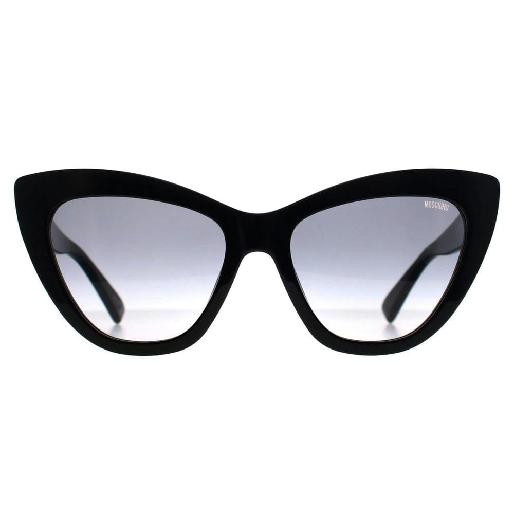 A bold cat-eye silhouette sets the tone for the Moschino MOS122/S 807 9O sunglasses, finished in black with grey gradient lenses. The shape brings a modern, feminine look that pairs easily with everyday styling while keeping the overall profile confident and defined.