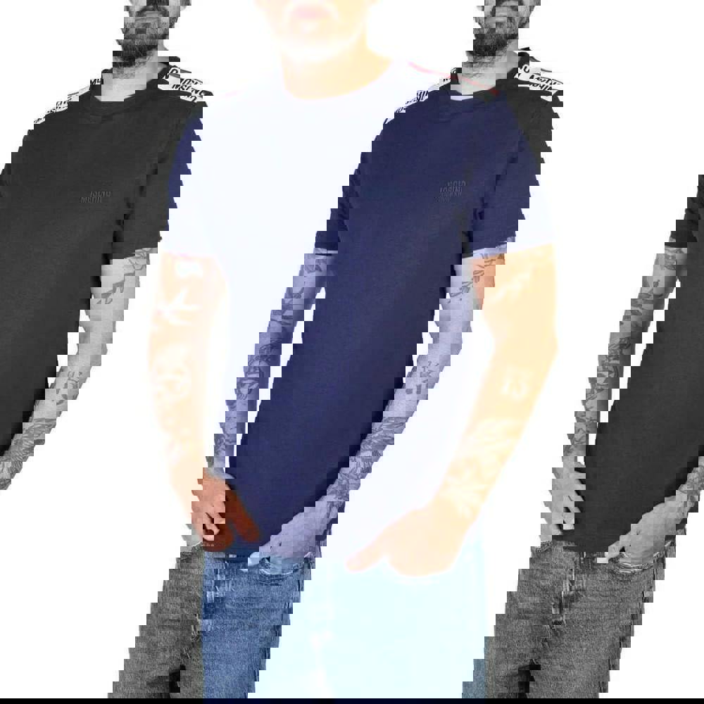 This Moschino unisex adult T-shirt comes in navy blue with a printed design and a crew neckline. Cut with short sleeves and a regular fit, it offers a clean, everyday shape that works well on its own or layered under casual outerwear.