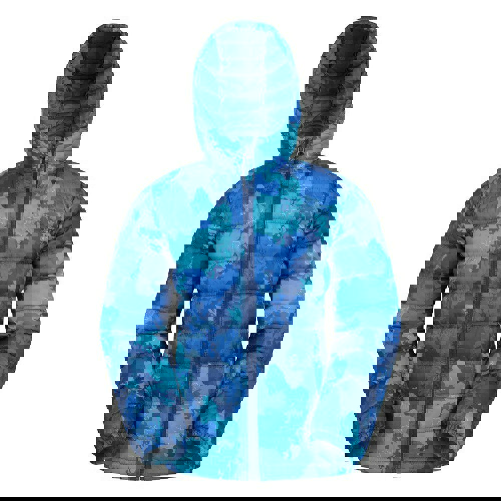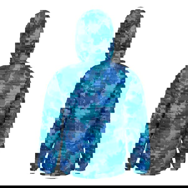 Mountain Warehouse Boys Seasons Camo Padded Jacket in bright blue, made from 100% polyester microfibre. The outer has a printed camo and logo design, with a lightweight feel and an insulating construction. A DWR finish is included for added fabric technology.