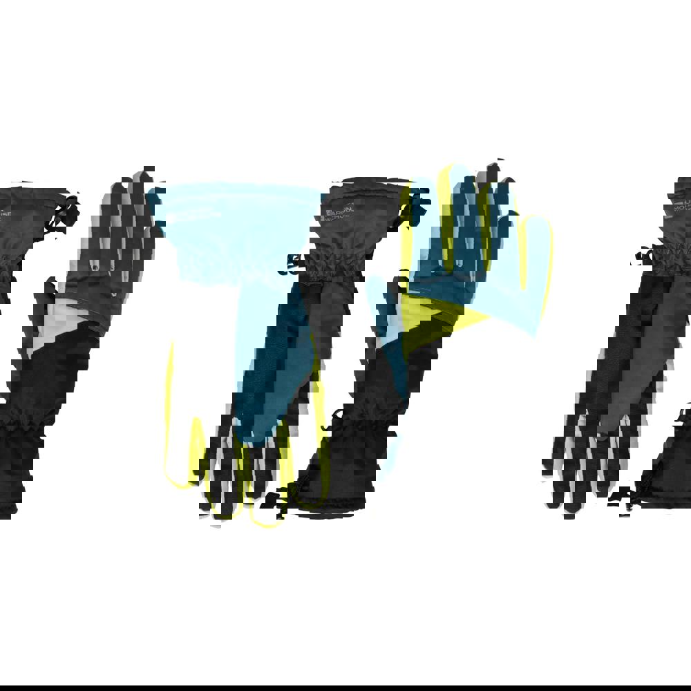 These children’s Extreme ski gloves from Mountain Warehouse come in dark green with a colour block design and logo detail. Made from 100% polyester with a fleece lining, they combine a breathable, waterproof fabric technology with a waterproof rating of 10000mm and 5000g/m²/24hrs.
