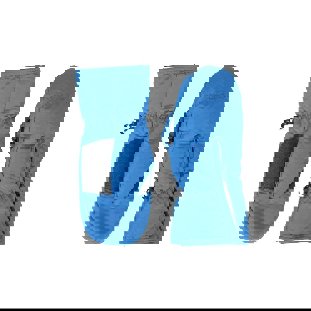 These children’s ski mittens from Mountain Warehouse come in bright blue and are made from 100% polyester with a fleece lining. The fabric includes a DWR finish and is snowproof, with a high warmth specification. A textured palm and textured thumbs add grip, while the cuffs combine elasticated stretch with a touch fastening tab for a secure fit. Glove attachment is included.