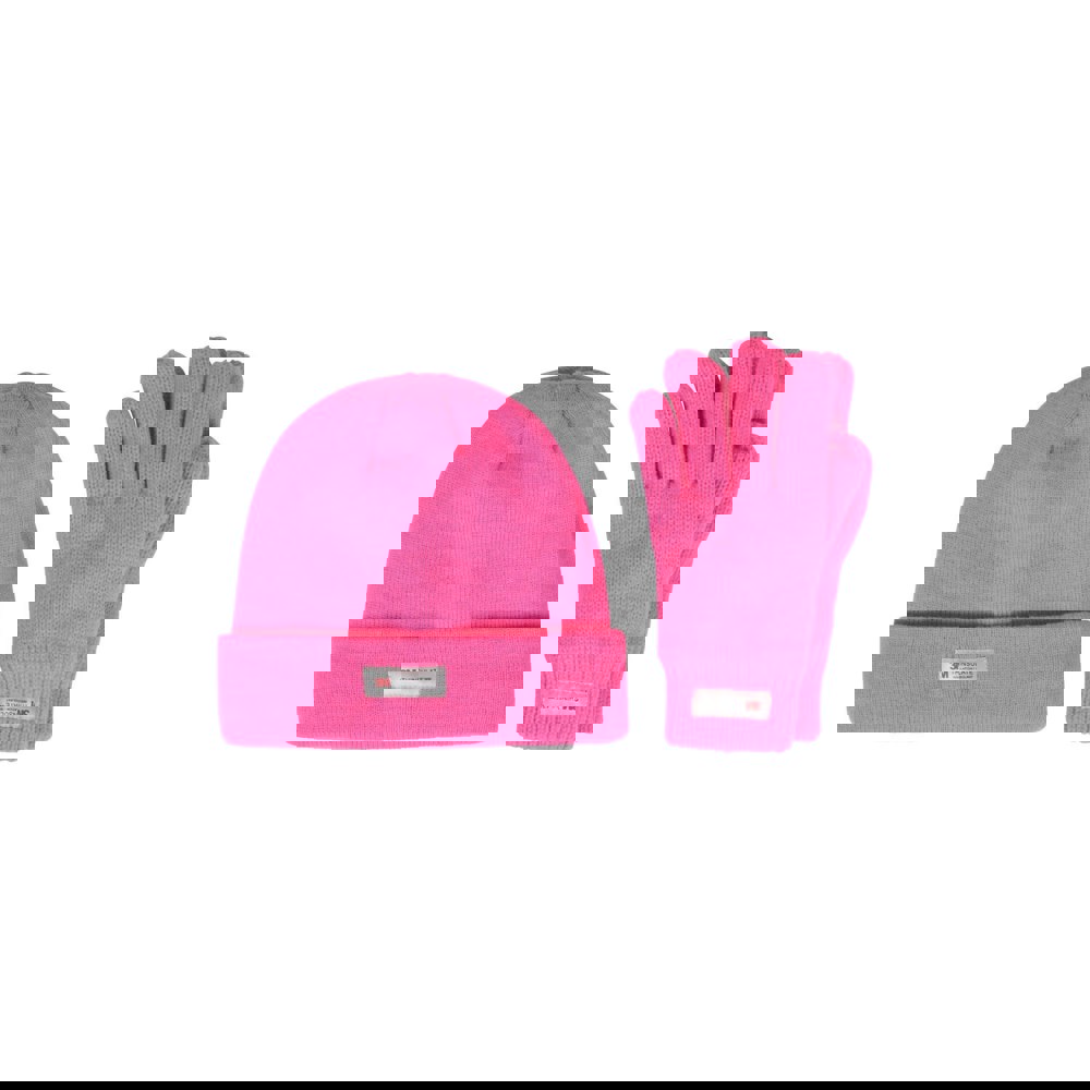 This beanie and gloves set from Mountain Warehouse comes in bright pink with a plain finish and text detail. The set includes one beanie and two gloves, with a lining that combines 3M Thinsulate and fleece.