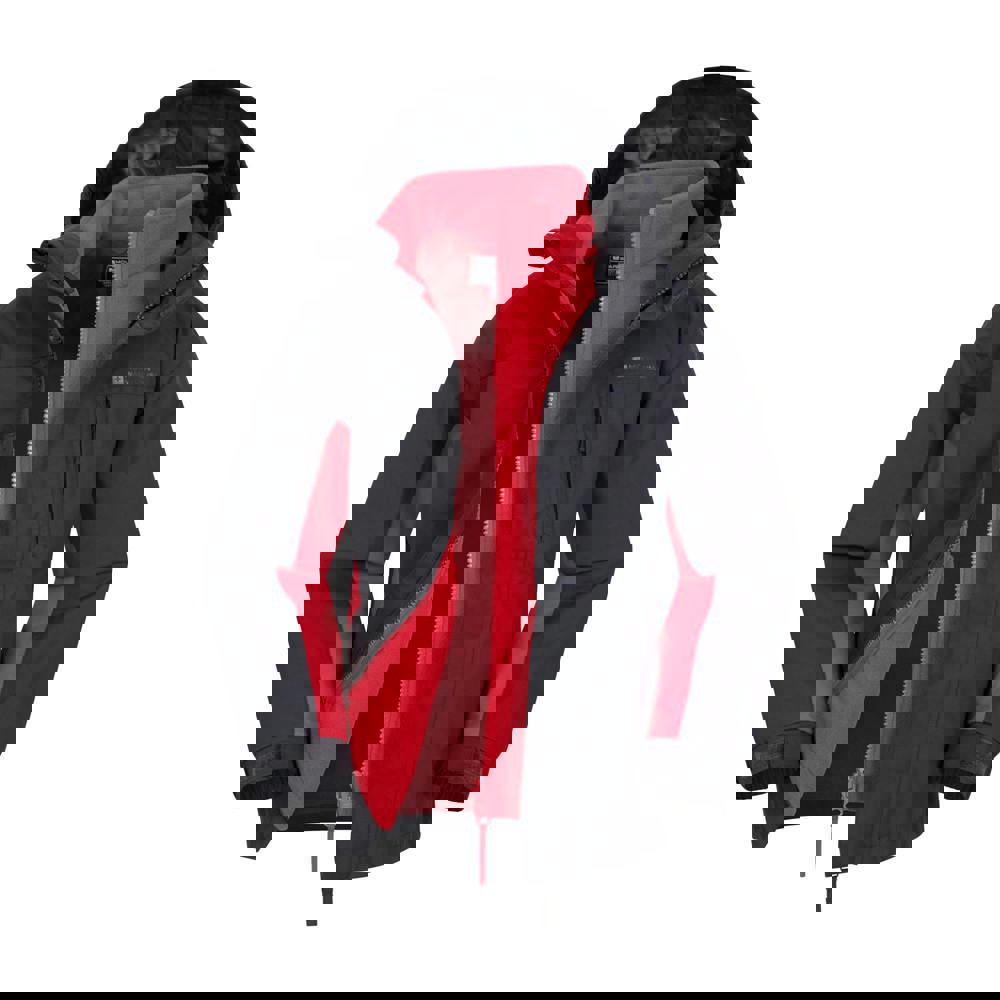The Mountain Warehouse Cannonball 3 in 1 waterproof jacket is made from 100% nylon with a soft tricot lining. It has contrast sleeves and a logo detail, with a hooded neckline and long sleeves. A detachable fleece layer creates a 3 in 1 construction, and the hood is also detachable for a changeable look and feel.