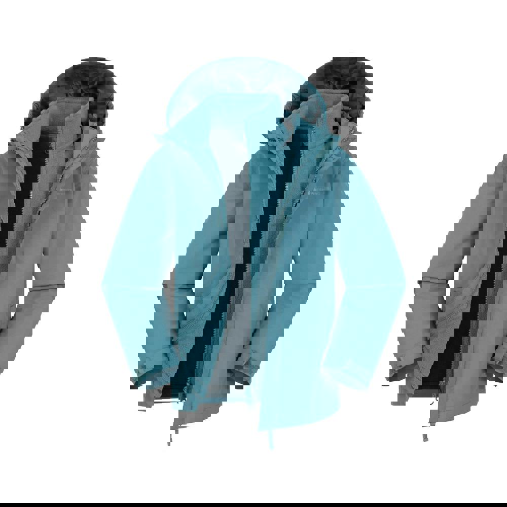 This children’s 3 in 1 jacket is made from 100% polyester with a fleece fabric inner layer. The outer has a plain finish with a logo detail and a DWR finish for a water repellent, water resistant surface. A detachable inner jacket allows the layers to be worn together or separately.