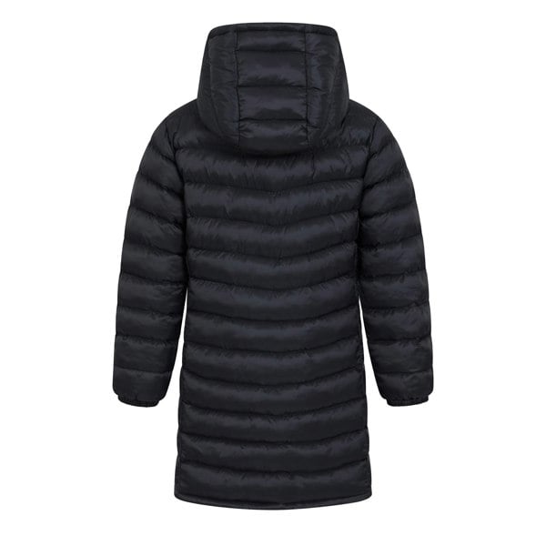 This longline padded jacket has a soft-touch outer in 100% nylon with a microfibre filling. A quilted finish and logo detail complete the look, with a hooded neckline and a grown-on hood for a clean, integrated shape. Long sleeves and elasticated cuffs keep the silhouette neat, while the full-length zip fastening includes a two-way zip for adjustable opening.