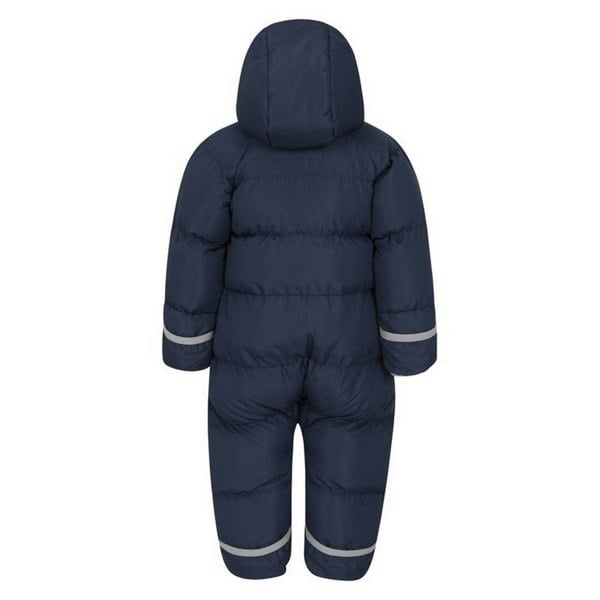 This children’s Frosty padded snowsuit from Mountain Warehouse comes in navy microfibre with a quilted finish and logo detail. It has a hooded neckline and long sleeves, finished with stretch cuffs for a secure fit.