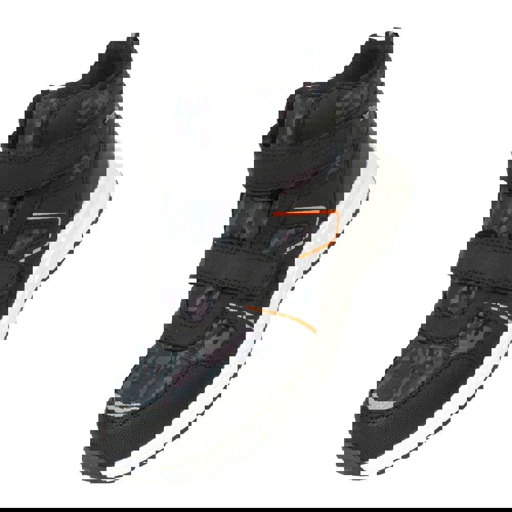 These children’s Jupiter Adaptive walking boots from Mountain Warehouse use IsoDry fabric technology with a water resistant finish. The high-top cut offers added coverage, while the camouflage design combines black and green for a distinctive look. A touch fastening strap provides a simple, secure fastening.