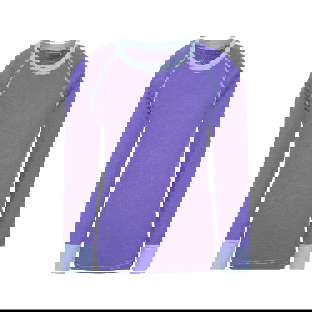 This merino wool base layer top from Mountain Warehouse comes in purple with contrast detail. It has a round neck and long sleeves for a classic base layer shape.