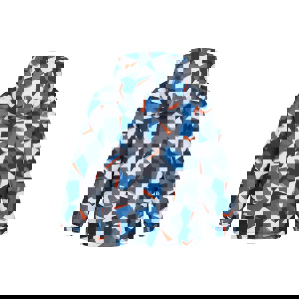 This children’s ski jacket from Mountain Warehouse comes in bright blue with a printed geometric and logo design. It has a fleece lining and long sleeves, with a hooded neckline and a sew-on hood. A full zip fastening is supported by touch fastening details, including a touch fastening tab at the cuffs.