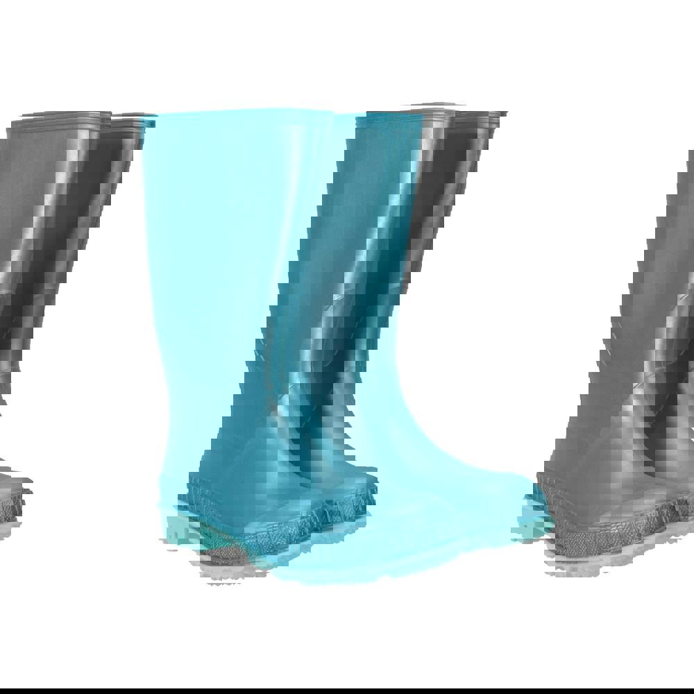 Built for wet-weather days, these Mountain Warehouse Children’s Plain Wellington Boots in teal keep things simple with a clean, calf-length silhouette. A soft jersey lining adds comfort inside, while the slip-on shape makes them easy to pull on and off. Underfoot, the PVC outsole is finished with deep lugs and a low heel, paired with a round toe and plain design for a classic wellington look.