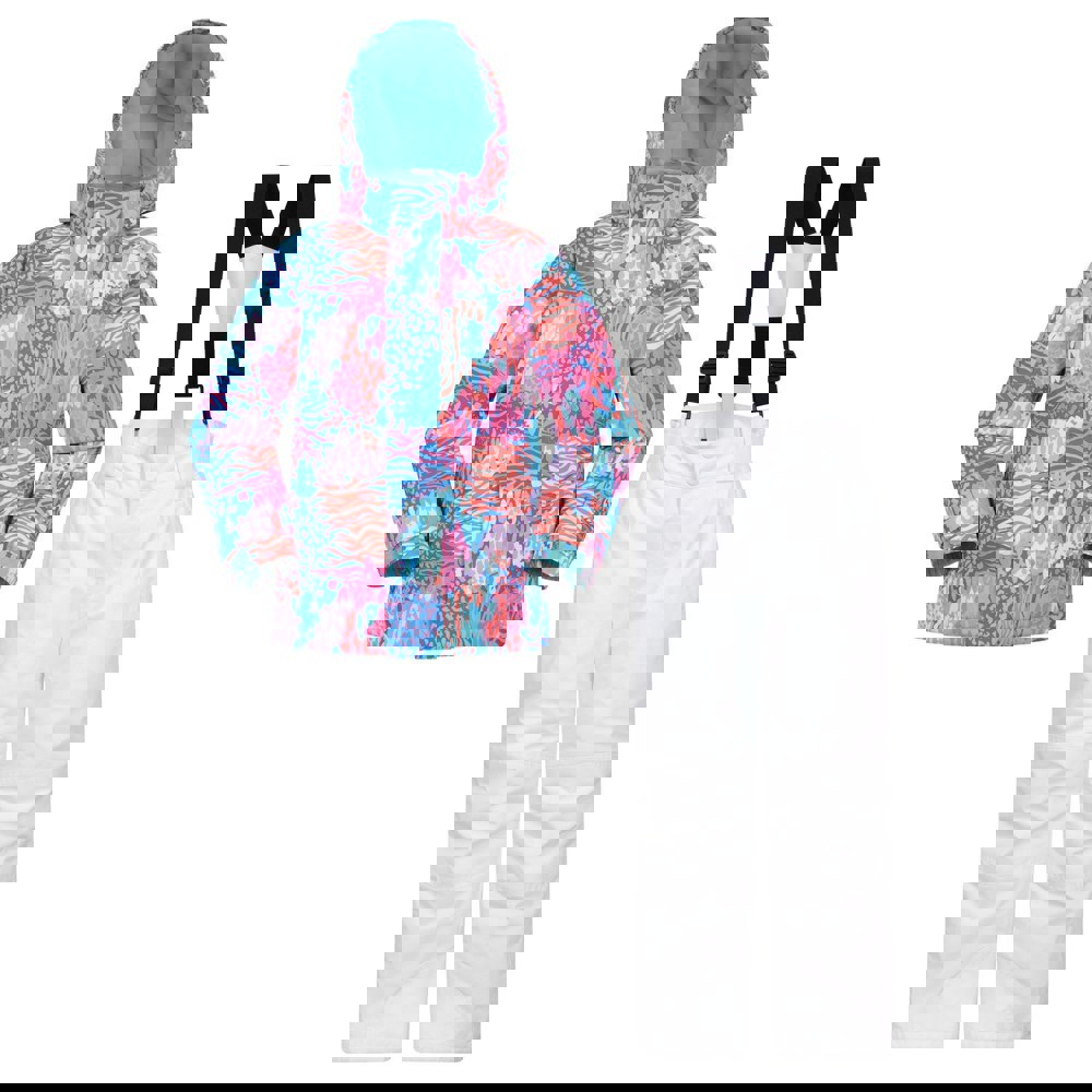 This printed ski set includes one jacket and one pair of trousers. Made from ripstop fabric, it has a DWR finish with snowproof and water resistant fabric technology. The jacket includes a snowskirt and a lift pocket, with a zip fastening and two side pockets.