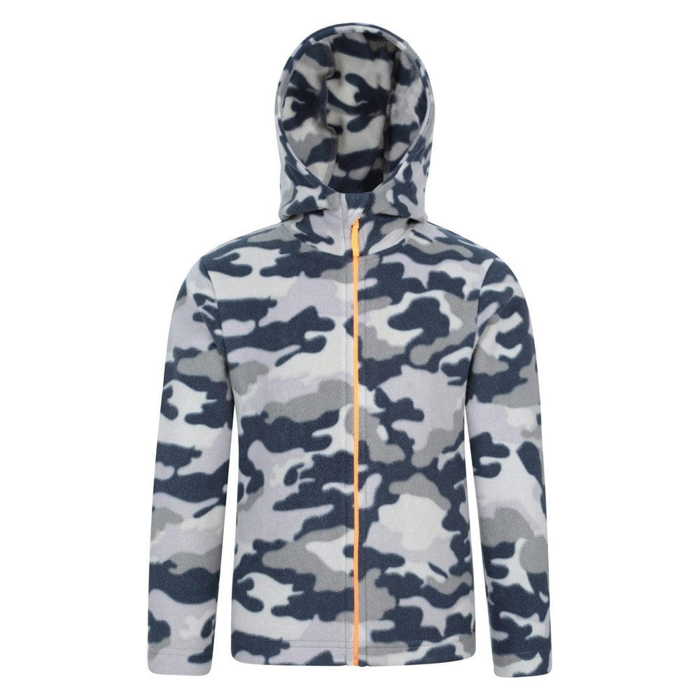 This children’s Pursuit II hoodie from Mountain Warehouse is made from microfleece with a camo design in grey. The fabric uses anti-pilling technology and is breathable, lightweight and quick dry. A sew-on hood and long sleeves provide full coverage, while the full zip fastening allows it to be worn open or closed.